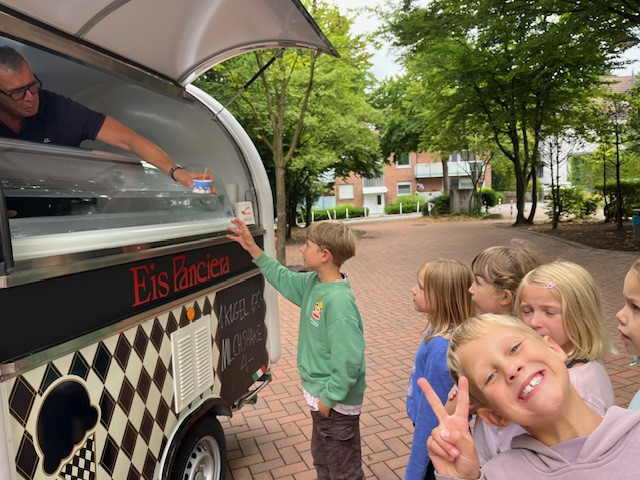 Heute überraschte ein Eiswagen die Kinder nach der Pause.