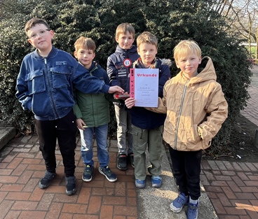 Am Mittwoch, dem 18.02.2026 reisten sie mit dem Pokal aus dem Vorjahr an - mit dem festen Willen ihn wieder mit zurück nach Kirchhörde zu bringen. Dies ist Lukas, Theo, Carl, Alex und Marc mit deinem Abstand von 4 Punkten zu den anderen Grundschulen auch sensationell gelungen. Wir sind stolz auf euch und drücken euch für das Landesfinale in Hamm am 27.03. 2026 alle Daumen. Ihr seid spitze!